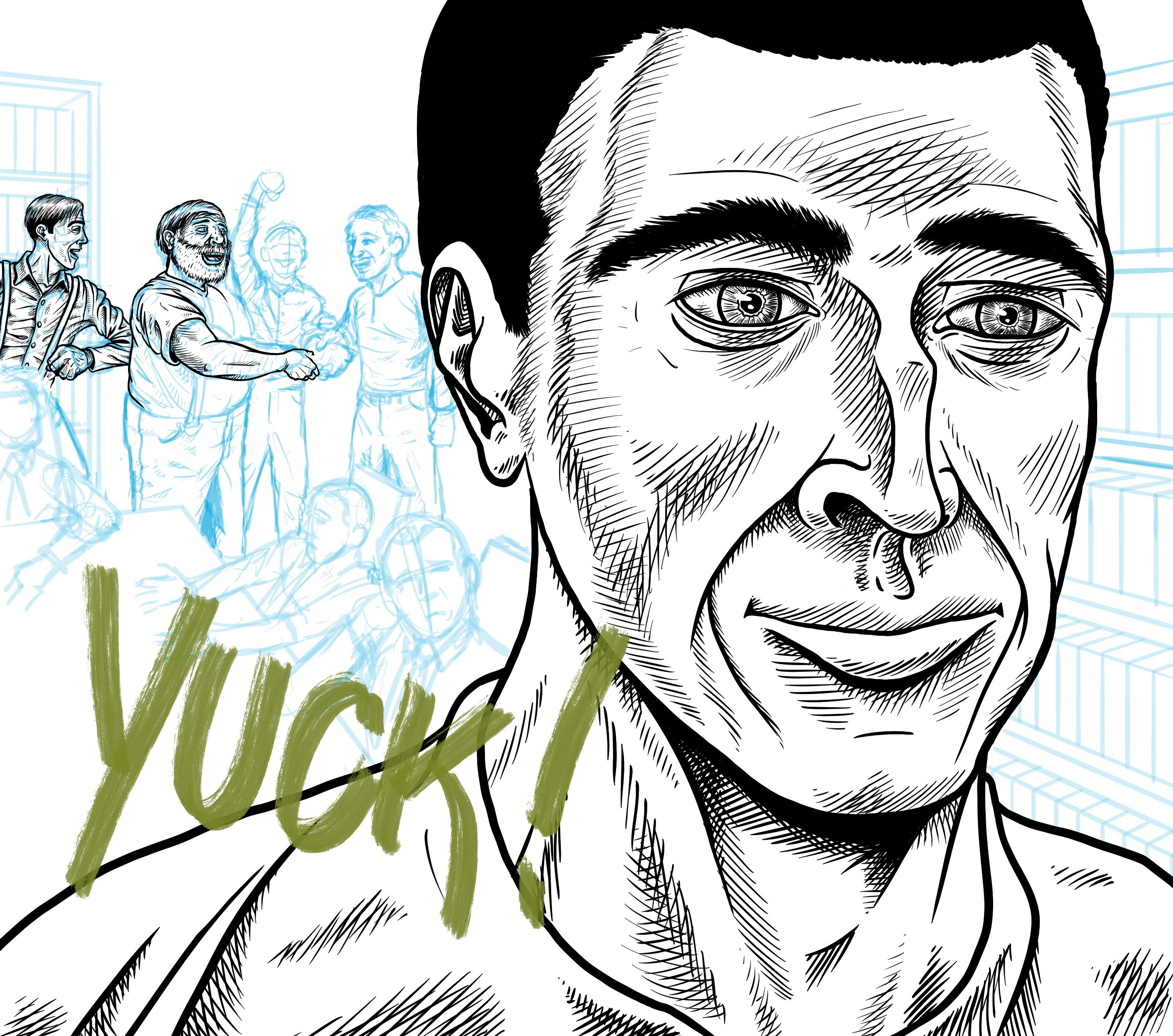 I turned that most recent layer off, and started from scratch, lightly sketching, then inking. My “hand” has changed, or, in other words, my technique has improved. Sure, the more you do equals practice, which begets progress and improvement. When I started that “Starwasian” title, I wanted to move away from all of the crosshatching that I was already doing. I wanted to move quicker, and just get it out there.